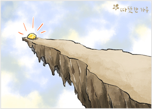 “낭떠러지의 끝에 금덩어리가 놓여 있습니다.