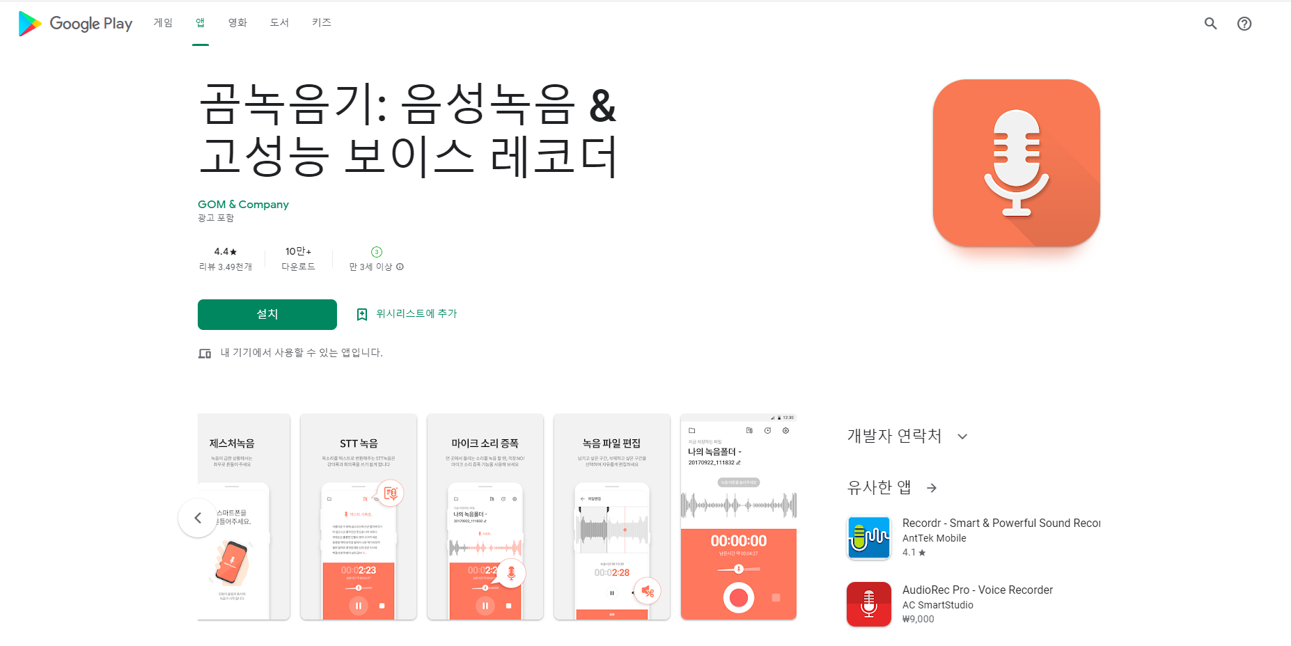 곰녹음기: 음성녹음 & 고성능 보이스 레코더 - Google Play 앱